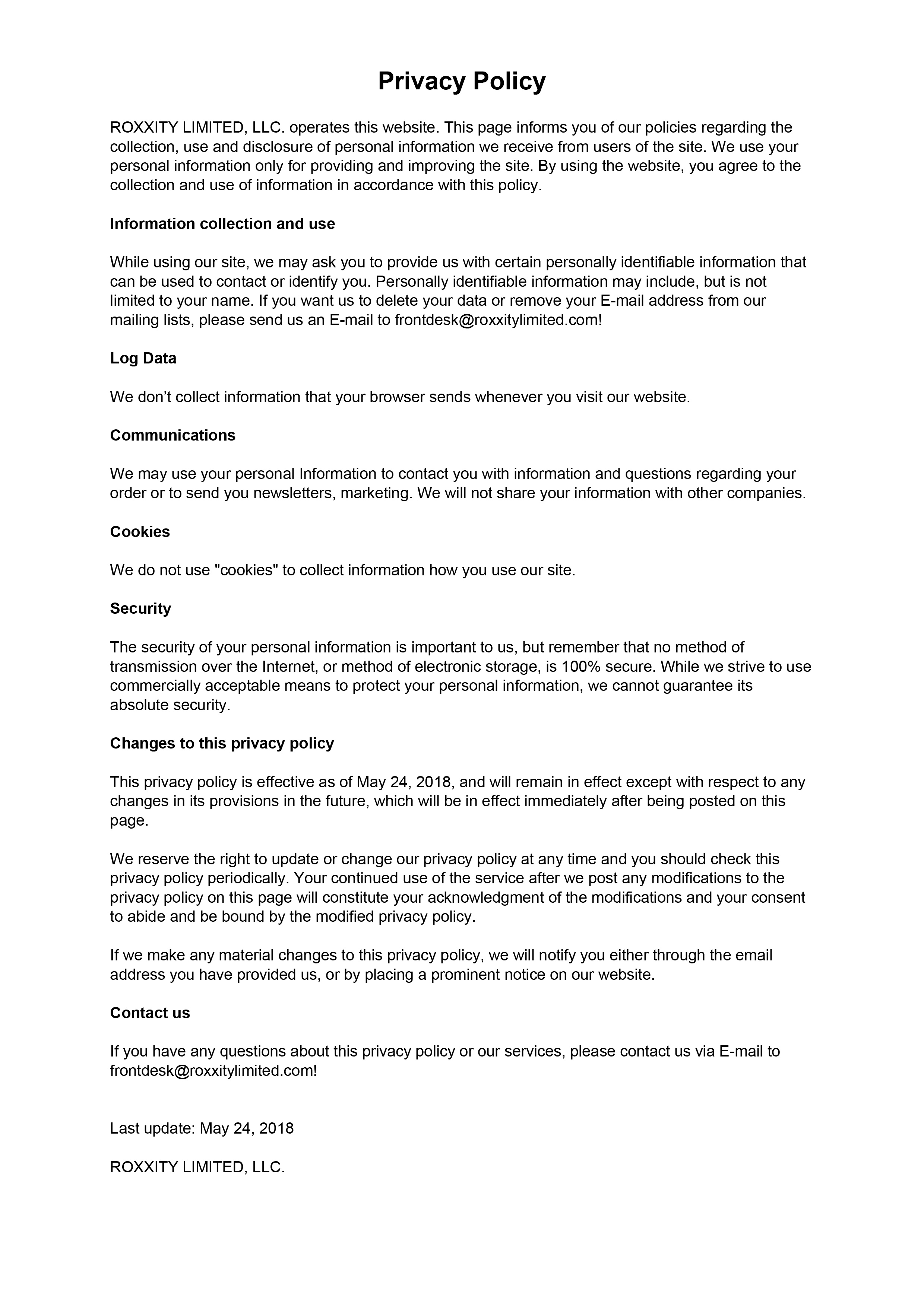 © 2025 ROXXITY LIMITED, LLC.